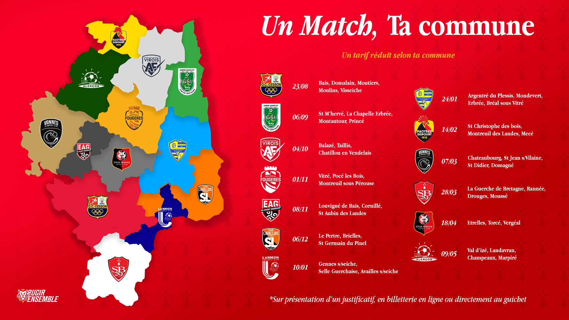 À chaque match à domicile, certaines communes bénéficieront d’un tarif réduit en fonction du match sur présentation d’un justificatif de domicile.